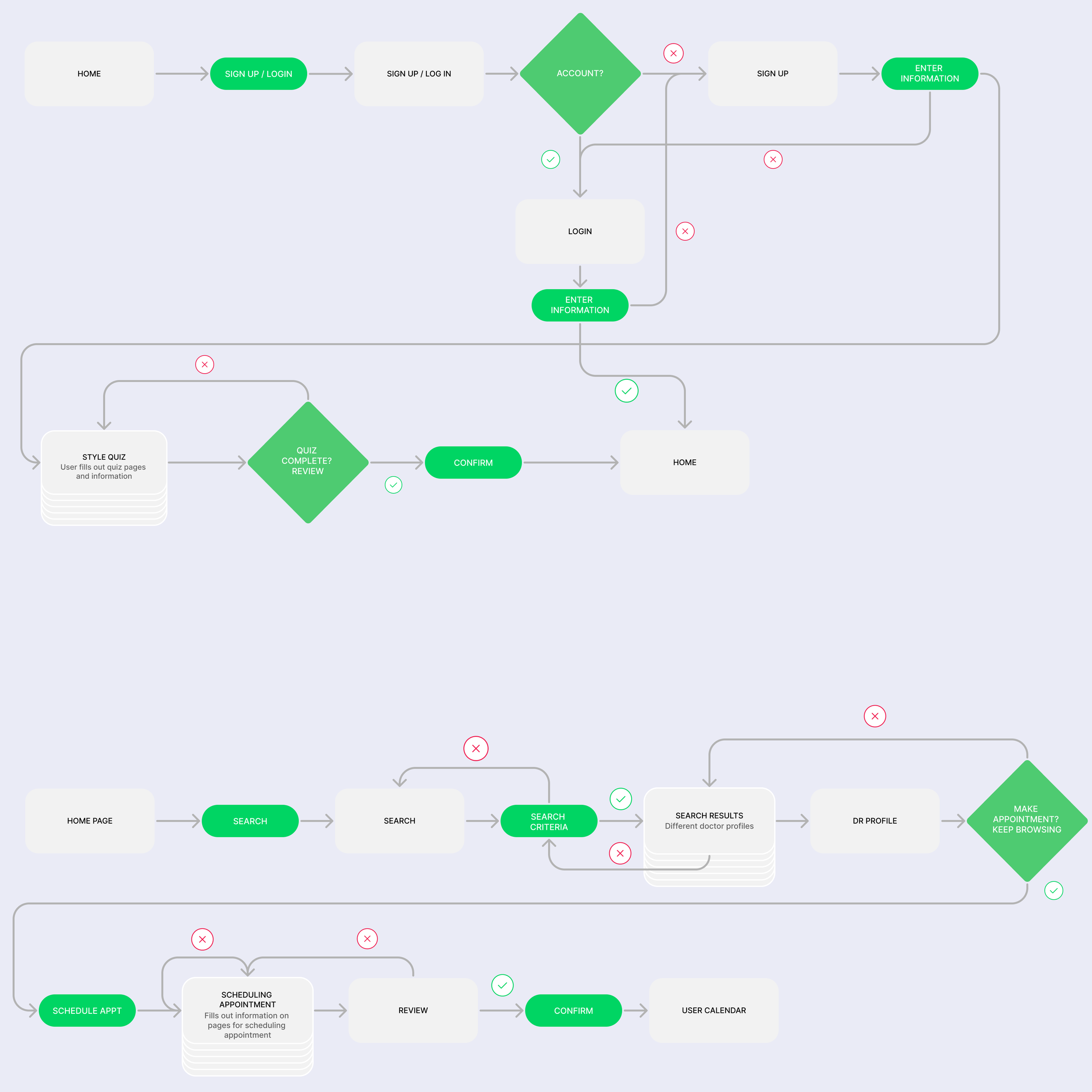 Task and user flows were crucial to get right, as finding healthcare had already proved to be significantly stress-inducing and overly-complex, according to user interviews.